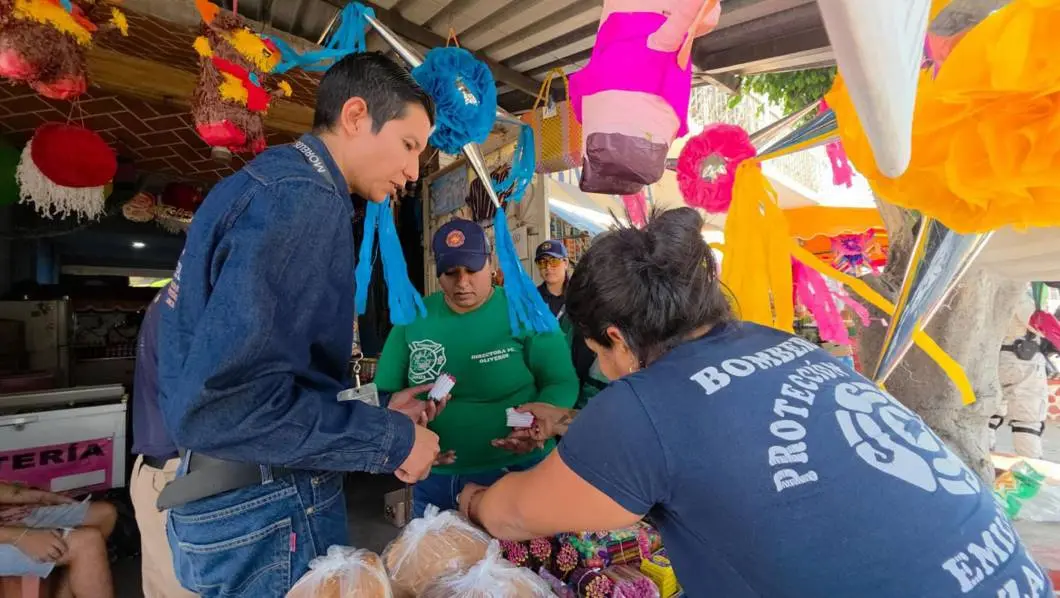 Autoridades estatales y municipales de Emiliano Zapata realizaron un recorrido por los principales puntos comerciales del municipio para emitir recomendaciones a comerciantes sobre la prohibición de vender pirotecnia y materiales