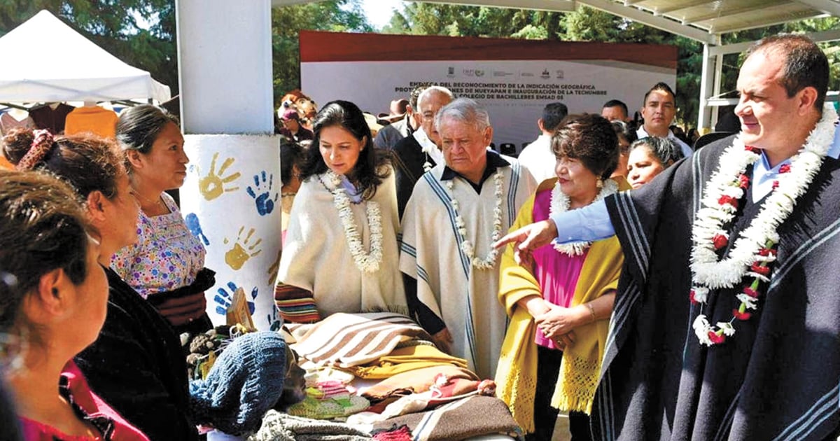 Los gabanes elaborados por las mujeres artesanas del municipio indígena de Hueyapan ya cuentan con la protección del Instituto Mexicano de la Propiedad Industrial (IMPI); este día, el gobernador Cuauhtémoc